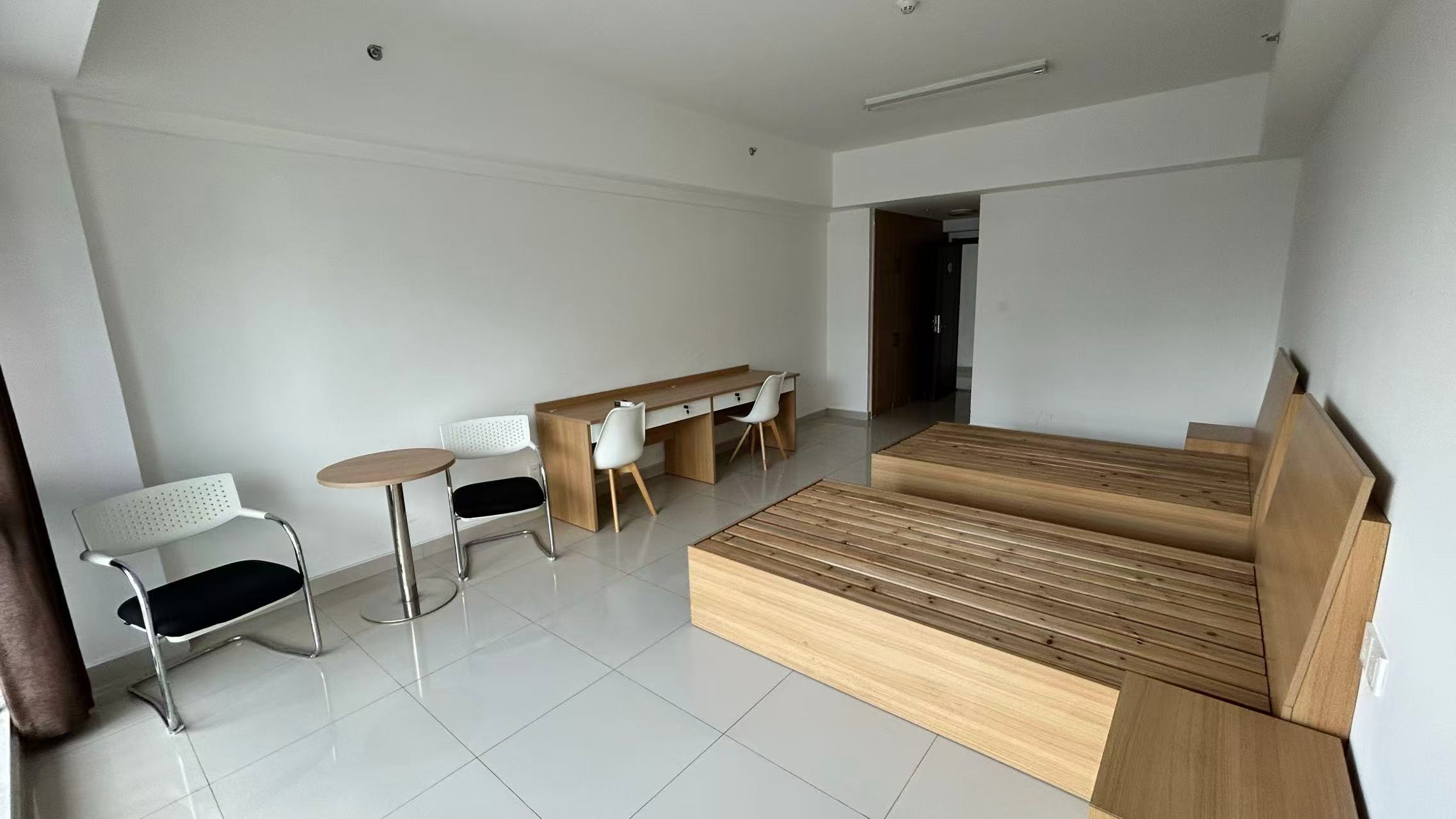 房间均为双人间,面积在25-30平方米之间,分为朝南和朝北两种类型,每间房包含空调、热水器、独立卫生间。