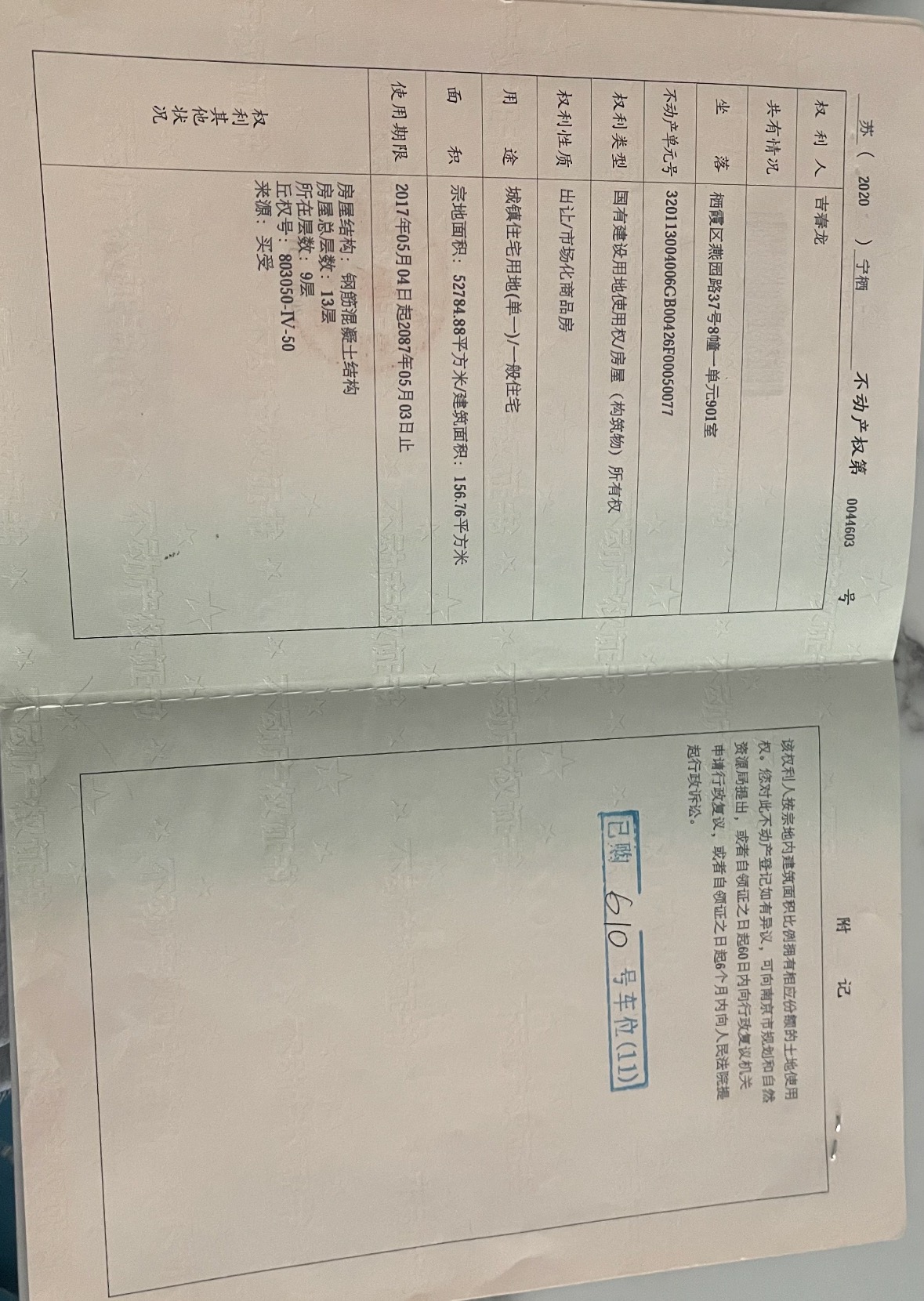 4、本平台核验码仅核验发布方申请核验时的房屋权属真实性,不对房屋是否限购限售、房屋是否被查封、是否被抵押(等他项权状态)、是否翻改建以及房屋安全性等负责。购房人在实际成交前请务必实地查看房屋真实情况,充分了解房屋是否符合当前最新限购限售政策,查验房屋不动产权证原件和产权人身份证明,同时打印不动产登记簿查询房屋最新查封、抵押等信息。