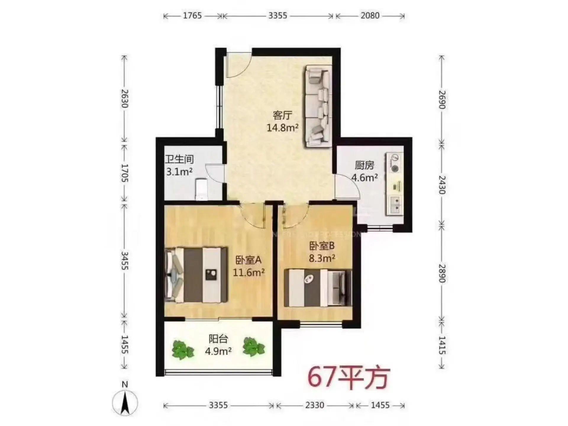 奥南金陵天地金穗花园两室急售