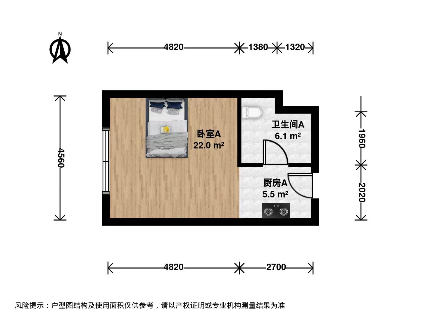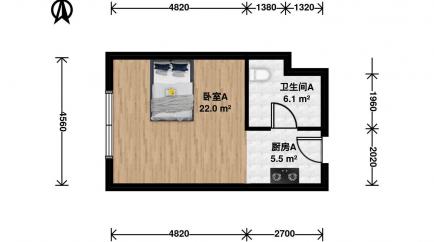 一室一厅带厨房卫生间